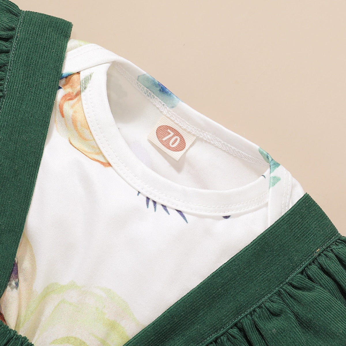 Three Pcs Girls Cotton Set. Floral Fly Sleeve Romper, Solid Ruffle Strap Skirt and a Bowknot Headband