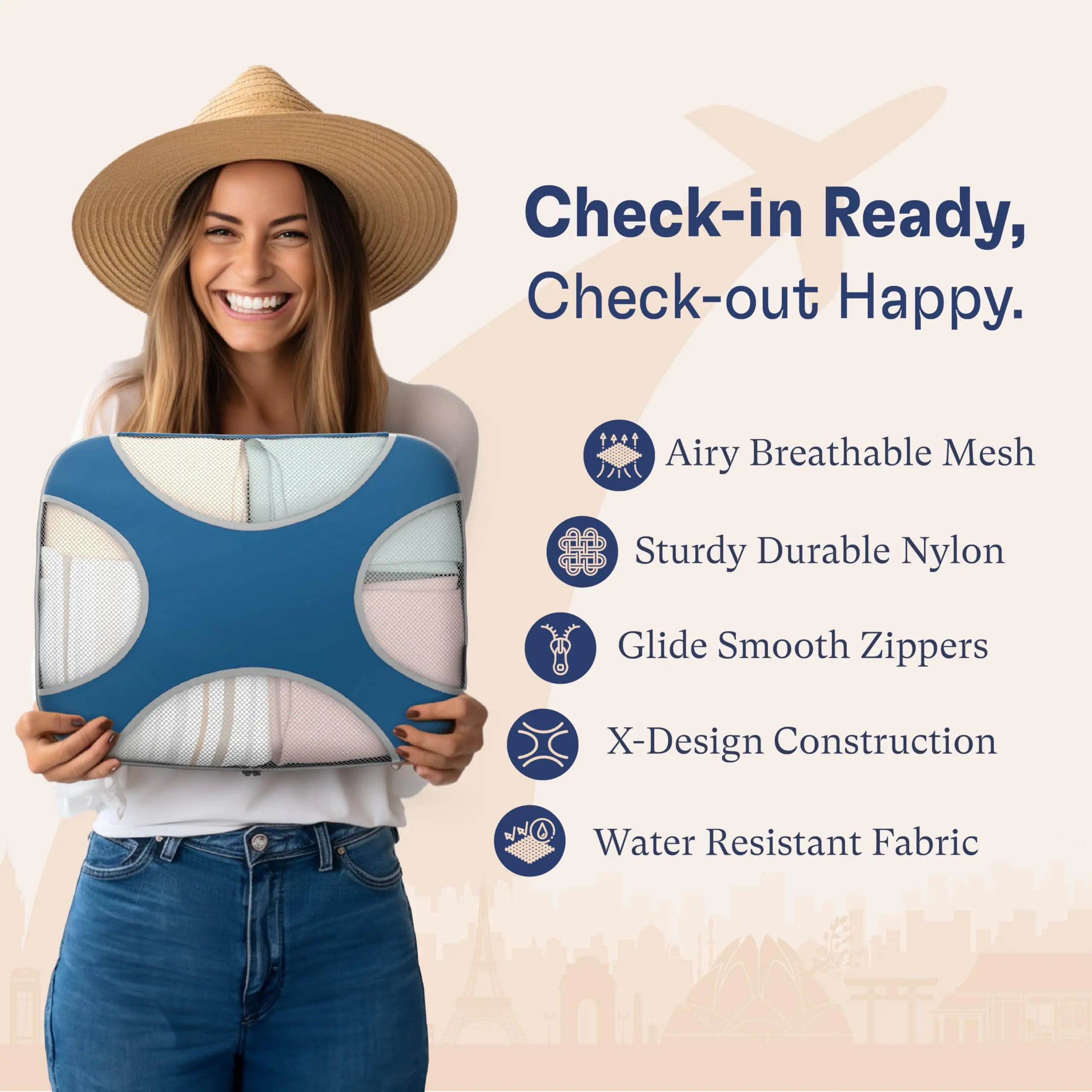 Pack more clothes in a small space for your next trip. One of the hardest things to do when packing for a trip is to fit everything you want to take with you in your luggage. Our packing cube system fixes this problem by packing all your clothes neatly into our space saving bags. It allows you to easily store and organize your clothes, making packing and unpacking even easier. Your clothes will remain wrinkle-free and will not be crushed during your travels. We have included a laundry bag with your cube set so you can separate your dirty clothes from your fresh clothes on your trip home. Shacke Pak is made from a high quality, durable, water resistant nylon material to withstand the wear and tear of travel. It is reinforced with an X-design woven seam specially designed to prevent the fabric from folding in half, allowing for a safer packing experience. Our bags are 4 inches deep giving you enough space to pack more clothes. Finally, we used YKK zippers on all of our cubes. YKK zippers are the world's largest high quality manufacturer of zippers and are known for their smooth, sturdy zippers. Shacke Pak Overview: - 4 packing cubes: extra large (17.5" x 12.75" x 4"), large (13.75" x 12.75" x 4"), medium (13.5" x 9.75" x 4"), small (11" x 6.75" x 4"). cm) - Laundry bag for storing dirty clothes at the end of your travels.