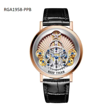 Uncover the artistry behind fine watch accessories with the New Reef Tiger/RT Luxury Leather Gear Strap. Designed to complement Reef Tiger timepieces, it embodies a fusion of tradition and innovation, offering discerning watch enthusiasts a symbol of excellence and luxury.