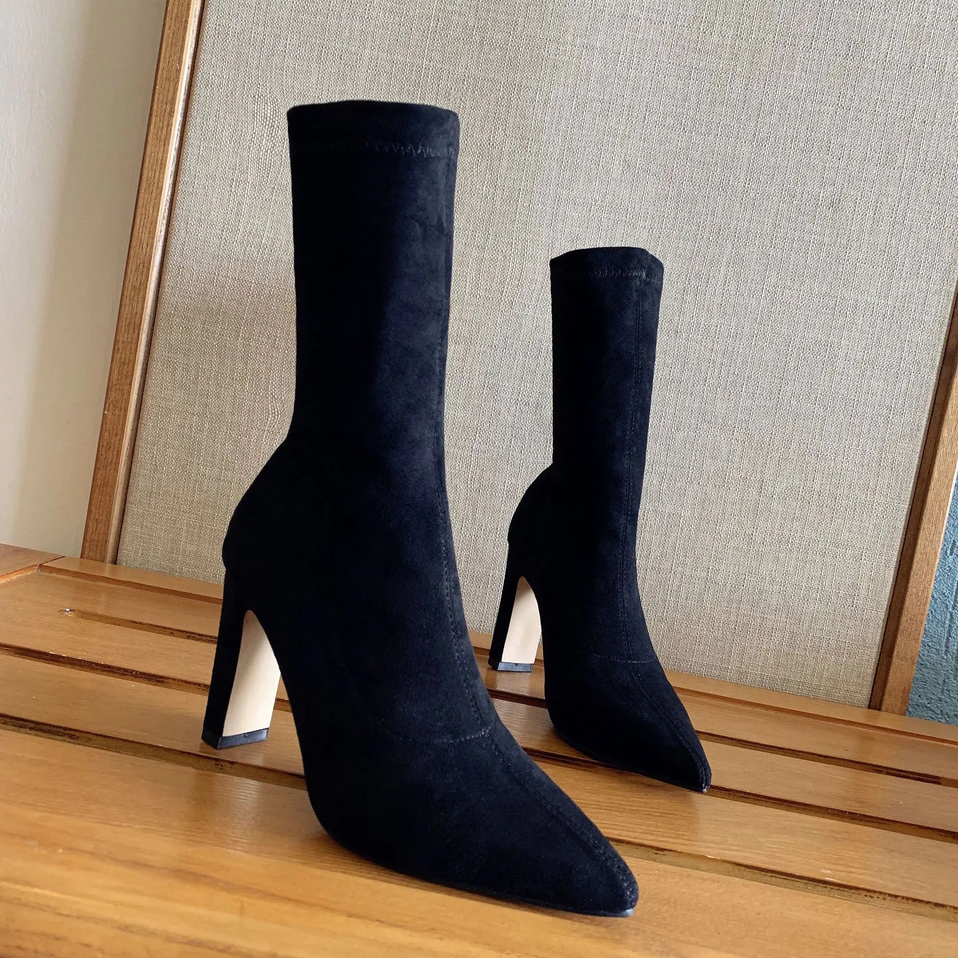 Step into the season with our stunning new suede boots, designed to elevate your autumn and winter wardrobe. Crafted from high-quality suede, these boots feature a chic pointy toe shape that adds a touch of sophistication to any outfit. With a variety of colors including classic black and warm apricot, and heel heights ranging from 7cm to 9cm, you can find the perfect pair that complements your style.